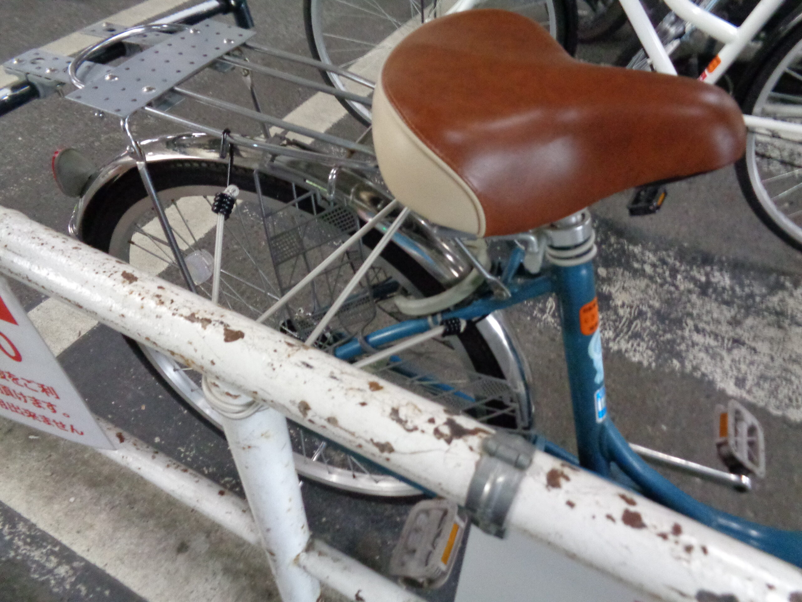 会社の自転車置き場(屋根なし)で、