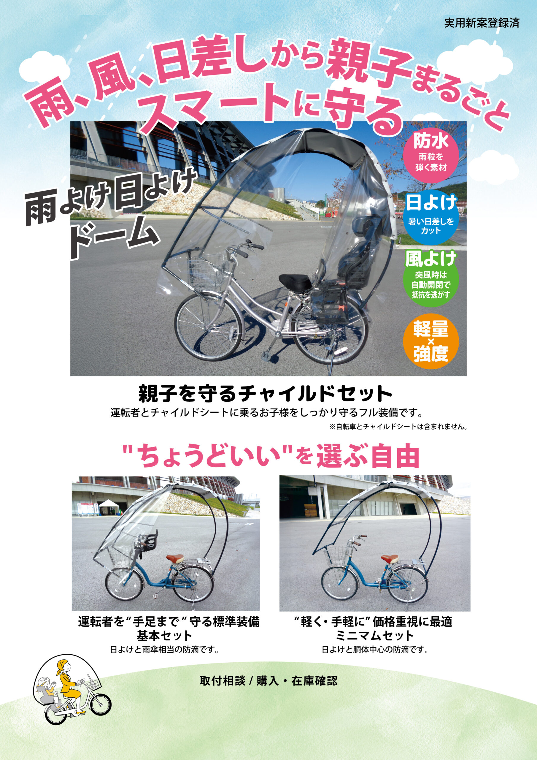 そんな中、自転車に乗るかた、とくに、園児を持つ沢山のママさんから、切実な悩みを聞きました。「雨の日の送迎、出勤」です。
